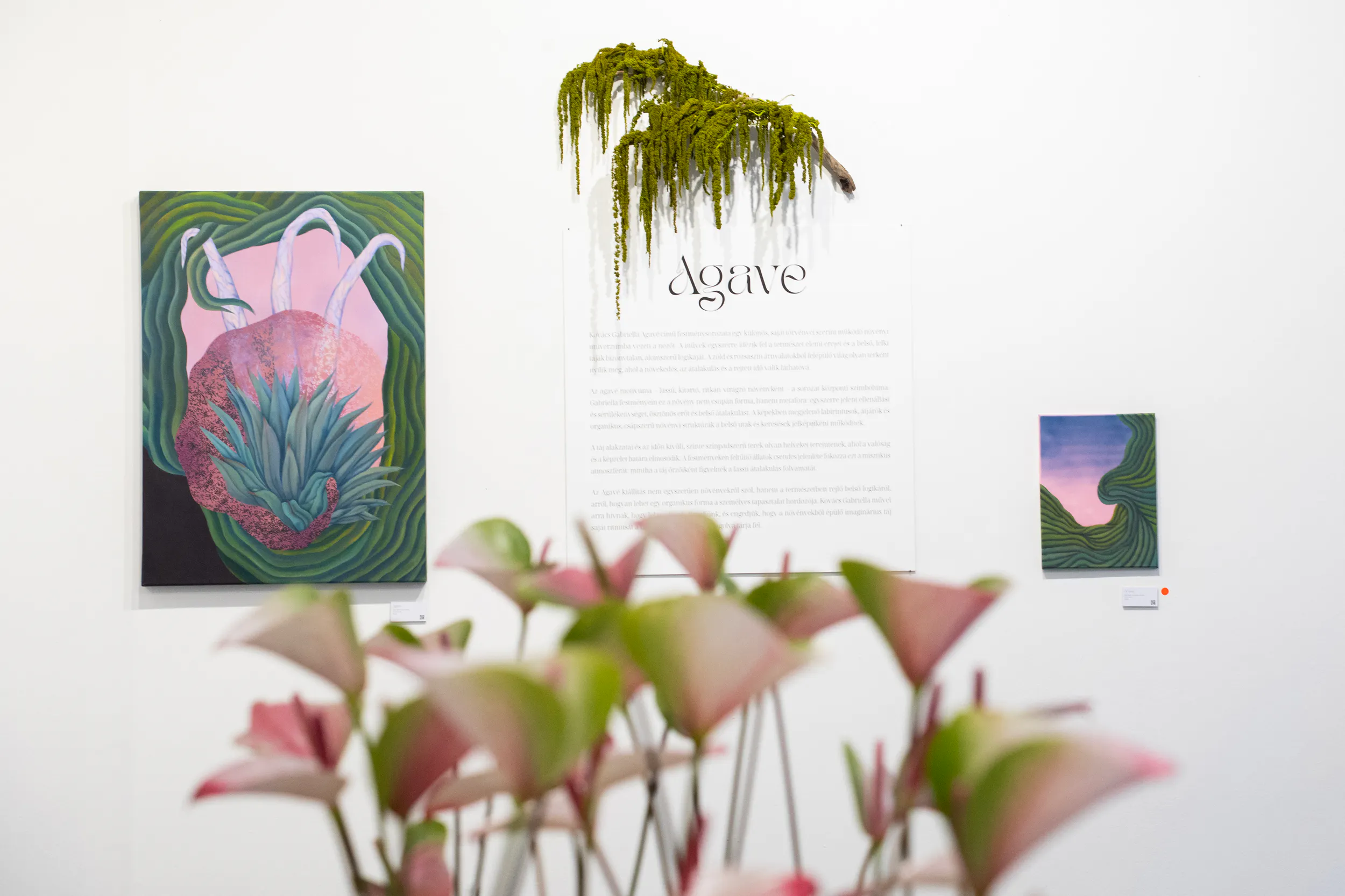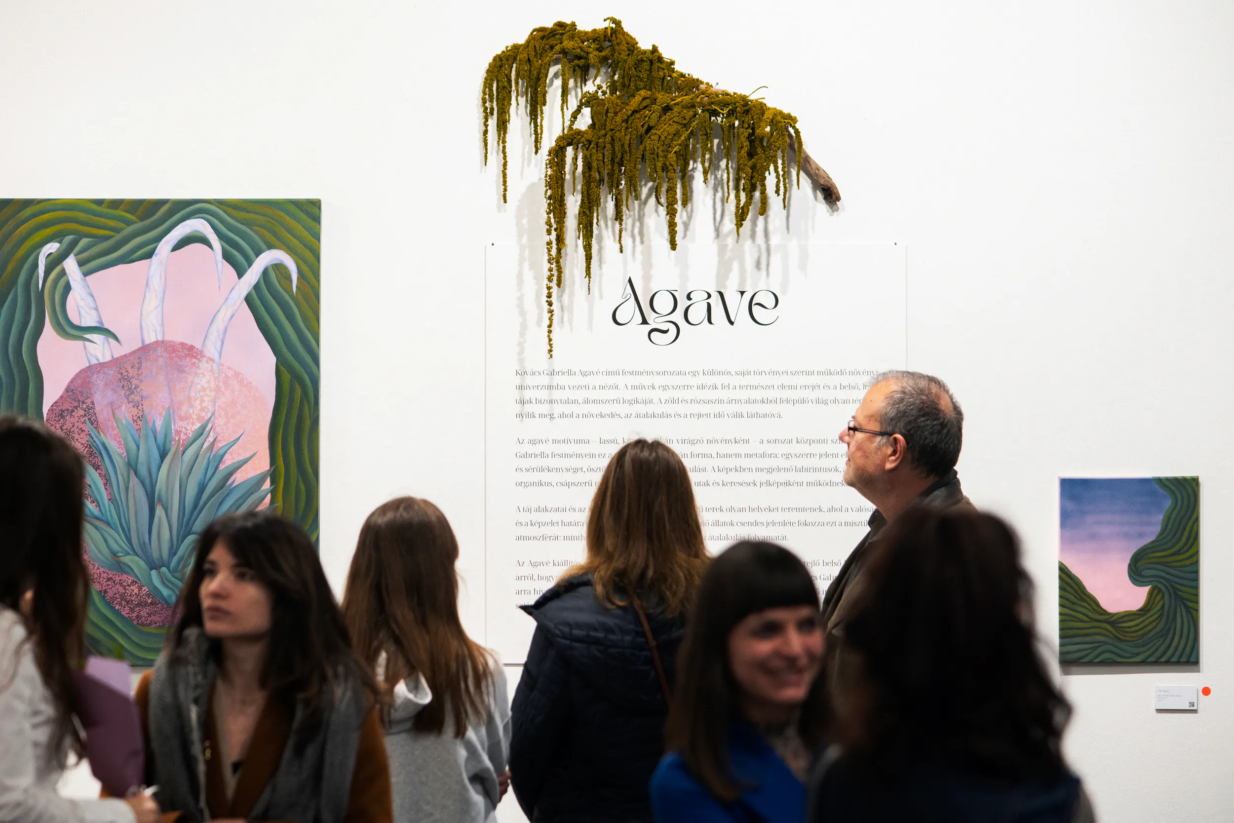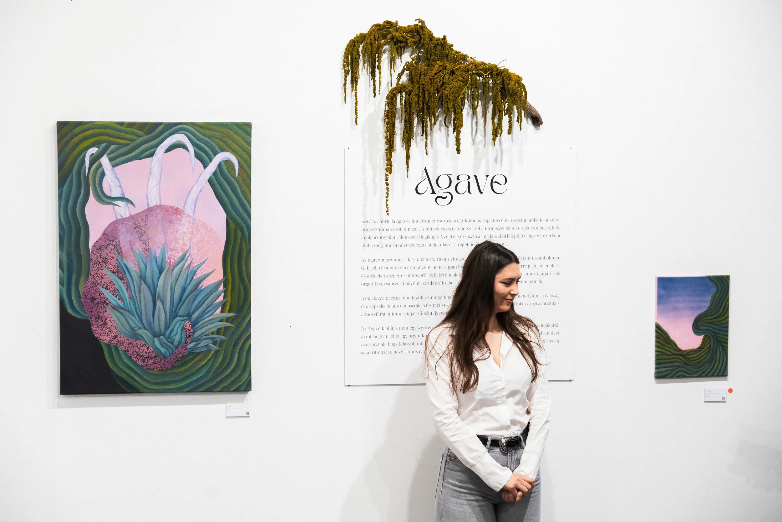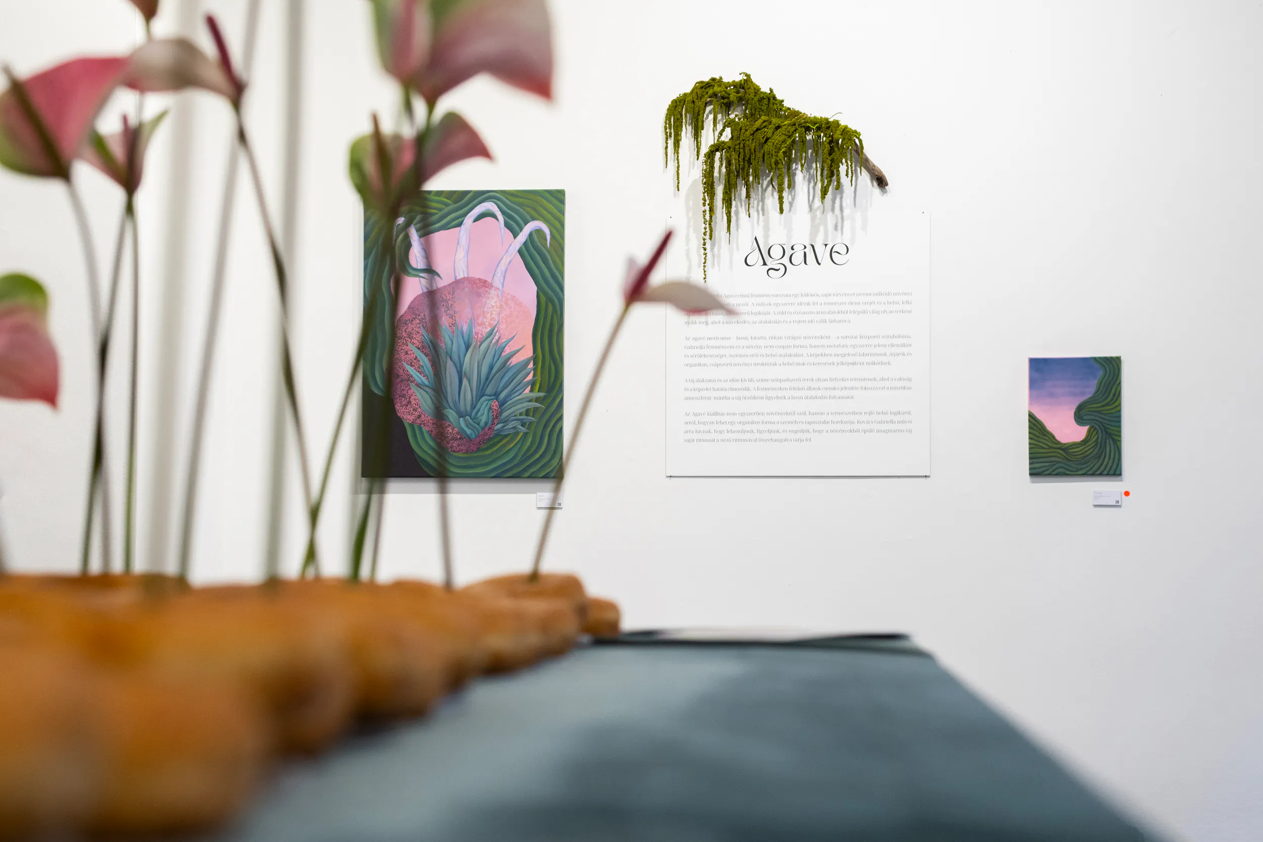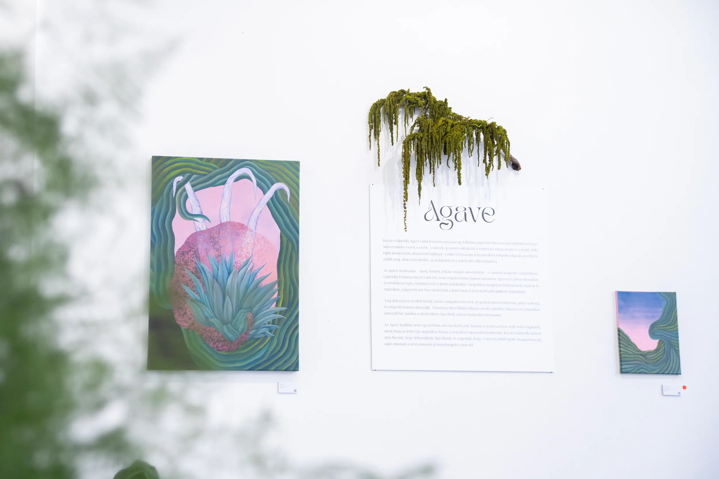 Az Agavé kiállítás így nem csupán festmények összessége, hanem egy érzékenyen felépített világ, ahol a természet belső térként, a növekedés pedig folyamatként értelmeződik. Gabriella munkái egyszerre szólnak az idő múlásáról, a regeneráció lehetőségéről és arról, hogyan kapcsolódhatunk újra azokhoz az organikus ritmusokhoz, amelyek körülvesznek bennünket.