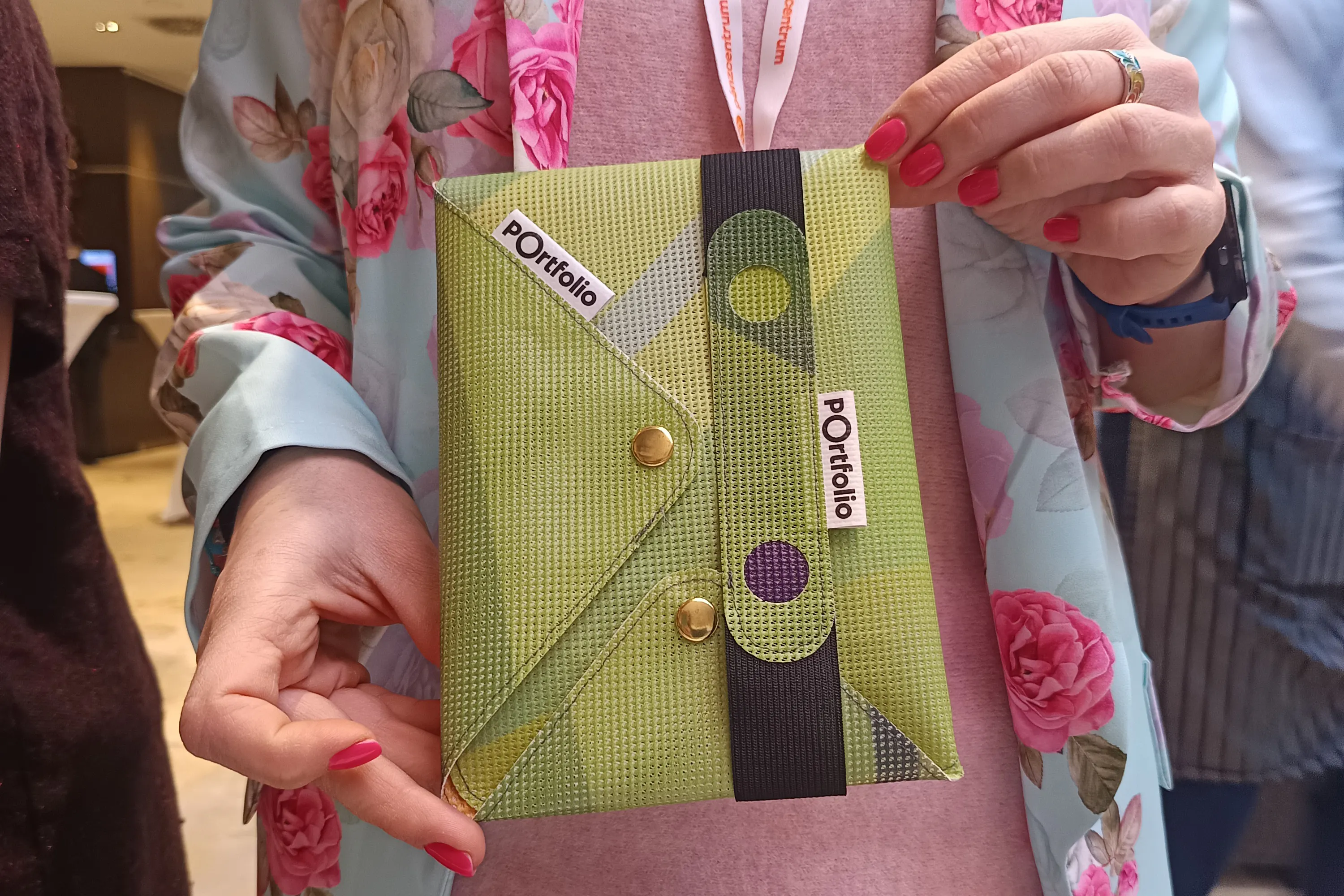 Március elején részt vettünk a Portfolio két meghatározó szakmai eseményén, a Retail Day-en és a Green Transition & ESG 2026 konferencián. A Hybridart Management készítette a helyszínen megtervezhető újrahasznosított ajándékokat - reklámhálóból tolltartókat és rendszerezőket készítettünk.